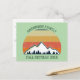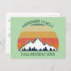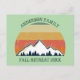 Convite postal de reunião de família personalizada legal para uma reunião de outono com primos, tias, tios e avós. Convide toda a tripulação com seu sobrenome e ano em verde ao redor da bela imagem do pôr do sol do outono sobre montanhas e árvores. design de viagem de acampamento personalizado do excelente.