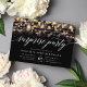 Nossas convites de festas de surpresa festivas em preto chico, ouro e branco apresentam um fundo preto rico com cordas de luzes brilhantes do ouro através do topo, e "festa surpresa" na tipografia da caligrafia. Personalize com seus detalhes surpreendentes de comemoração em branco; pode ser usado em qualquer ocasião, como festas de aniversário ou festas de aniversário.