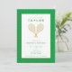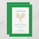 Celebre seu tênis ou fã de tênis com estes maravilhosos convites dourados e verdes com malhas de tênis de ouro. Cor do texto e do plano de fundo personalizável. A idade de aniversário também é personalizável. Parte de uma coleção da Parcel Studios. *Nota: Os detalhes em ouro neste convite são simulados. Não será utilizada nenhuma folha de alumínio real no fazer deste produto.