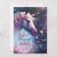 O design de Unicórnio cósmico pode ser usado para qualquer evento. O texto pode ser alterado para qualquer evento. Você pode alterar a fonte, o texto, a cor do texto e até mesmo a forma do papel e o tipo de papel.