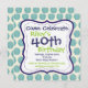 Este convite é mostrado como um convite de festas de aniversário de 40 anos, mas esses modelos de convites de festas de aniversário fofos podem ser facilmente usados para crianças ou adultos, ou podem ser personalizados para qualquer tipo de festa ou evento. Basta preencher o texto com os detalhes do seu próprio partido. Se quiser alterar a cor do texto ou reorganizar as coisas, basta usar o botão laranja "Personalizar". O verso do convite tem o mesmo padrão colorido que o lado frontal.
