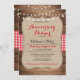 Altere o texto para se adequar à sua Festa de Aniversário. Este convite de madeira rústica e cheque vermelho é a combinação perfeita para um olhar romântico elegante. Impressão traseiro incluído
