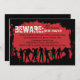Convite de festas vermelho do Dia das Bruxas do zombi. Como você sobreviverá ao apocalipse de vinda do zombi? Fácil com este anúncio vermelho e preto do partido do Dia das Bruxas do zombi. Isto é perfeito para todo o partido do Dia das Bruxas do zombi ou festa de aniversário temático do zombi. Este Dia das Bruxas convida características um vermelho e o fundo preto do grunge com zombi preto mostra em silhueta.