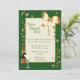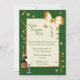 convite de festas de Véspera de ano novo elegante feito em tom de ouro e verde, com uma adorável área de texto de borda escaldada, no meio, e um fundo esfestivo verde esbranquiçado. Gráficos de um tom de ouro, estrelas, arco e uma garrafa de champanhe e decoração de vidro em toda a área de texto. O texto, em verde, está pronto para personalizar o evento de Anos novos.