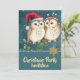 Vintage Teal Blue Christmas Owls Convite de festas apresenta corujas bonitas de Natal Sentadas no galho da árvore, queda de neve, borda dourada, floco de neve de ouro e modelo de texto na moda.Um design perfeito para a festa de Natal.Clique no botão personalizar para personalizá-lo com seu próprio texto