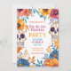 Apresentando um convite de festas vibrante e festivo Día de Muertos, projetado para capturar a alegria e a cor dessa celebração amada. O convite apresenta um fundo branco limpo, proporcionando uma canvas brilhante e nova para os designs vivos. Em ambos os lados do convite, dois crânios de açúcar maravilhosamente decorados ocupam o palco central. Esses crânios de açúcar são enfeitados com padrões intrincados e cores vibrantes, criando um aspecto festivo e tradicional. Ao redor dos crânios de açúcar estão aglomerados de flores cor-de-rosa, amarelas e azuis, adicionando um pop de cor e criando uma atmosfera alegre e celebratória. Os elementos florais harmonizam-se com os crânios de açúcar, dando ao convite uma sensação equilibrada e coesa. O verso do convite continua o fundo branco, com espaço para texto personalizável. Aqui, você pode adicionar detalhes do evento, uma mensagem pessoal e uma linha RSVP, todas moldadas pelo mesmo design de crânio floral e de açúcar para um toque consistente e elegante. Com seus brilhantes crânios de açúcar, sotaques florais coloridos e fundo branco limpo, este convite Día de Muertos é a forma perfeita de dar o tom a uma celebração alegre e vibrante que honra a tradição e junta as pessoas.