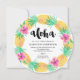 Prepare-se para uma celebração tropical divertida! Este design pode ser utilizado para qualquer evento e apresenta flores tropicais brilhantes cor-de-rosa, ananases amarelas e palmas verdes com acentos falsos de folha de ouro.