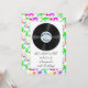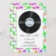 Um convite do aniversário do divertimento com um 50 inspirou o tema. O néon colorido splattered o registro da beira e de vinil. Apropriado para homens e mulheres de todas as idades. Fácil personalizar com os detalhes de seu evento. Os convites vêm com envelopes.