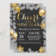 Convite de Fim de Ano em Ouro. Feliz Ano Novo. Floco de Neve Dourado. Pena Branca. Convite de Chá de Noiva de Natal. Fundo de Quadro Negro e Dourado. Preto e Branco. Para personalização adicional, clique no botão "Personalizar" e use nossa ferramenta de design para modificar este modelo.