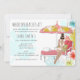 Convite de festa de despedida de solteira para fim de semana de fuga para a praia apresenta a noiva em um ambiente tropical. Noiva disponível com cabelo loiro, castanho e ruivo e pele clara ou escura.