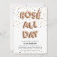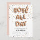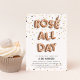 Existe uma maneira melhor de passar um fim de semana de verão quente? Achamos que não. Celebre o dia com este design de convite moderno e trendy que apresenta "rosé o dia todo" escrito com balões dourados rosados em um fundo de confetes rosa, dourado e preto. Personalize usando os campos fornecidos para fins de semana de garotas, festas de despedida de solteira, festas na piscina e mais.
