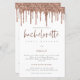 Convite de Fim de Semana do Lixo Glitter Dourado do Rosa de Orçamento. Um tamanho maior de 5,5" x 8,5" a um preço orçamentário, em um STOCK CARD SEMI GLOSS de 110 lb, excelente de convites, aproximadamente na mesma espessura de um cartão postal, ou um estoque LINEN elegante de 110 lb - para um luxo, ligeiramente mais fino, com um valor de excelente. OBSERVE QUE OS ENVELOPES OPCIONAIS SÃO UM POUCO MAIORES EM TAMANHO A 6,75" x 9" aprox. Este alternativo de tamanho de orçamento também está disponível em outras opções de papel. O papel FELT de 100 lbs é colorido por buff, NÃO branco, então adiciona um toque rústico. O estoque de papel MATTE de 80 lb é branco brilhante, para impressão nítida, excelente para seus menus e programas, enquanto o papel SATIN de 80 lb é fino e leve, ideal para gabinetes. O cabeçalho principal da Festa Hen está em uma tipografia de script de conjunto cor-de-rosa rosa e o resto do texto que você pode personalizar facilmente, assim como seus detalhes itinerários no sentido inverso.