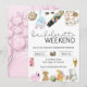 Planeje uma viagem dos sonhos com suas melhores amigas nesta inspiração em aquarela de praia, surf, patinação, drinques tropicais e afins. Fim de semana de despedida de solteira ou festa de despedida de solteira. Você vai se casar! Ou talvez sua melhor amiga esteja se casando. Faça uma viagem para o seu fim de semana de despedida de solteira com uma viagem inesquecível com convites lindos que serão bem-vindos na caixa de correio de todas as suas amigas mais próximas. Adicione seus detalhes personalizados a este design usando as caixas "Editar este modelo de design" no lado direito do item, ou clique no botão azul "Personalize" para organizar o texto.