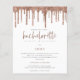 Convite de fim de semana para despedida de solteira com brilho em rosa dourado. Uma alternativa de preço acessível com tamanho MENOR 4,5” x 5,6”. Disponível em PAPEL CARTÃO 110 lb SEMI BRILHANTE, que é a opção padrão (recomendada para convites), OU PAPEL 80 lb COM ACABAMENTO EM SEDA (ideal para inclusões). Envelopes são uma opção extra e são ligeiramente maiores que o tamanho do cartão. O cabeçalho principal "Hen Party" está em uma tipografia de script rosa, e o restante do texto você pode personalizar facilmente, bem como os detalhes do seu itinerário no verso.