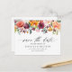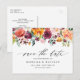 Salve a data! Anuncie a data do seu casamento para familiares e amigos com este cartão postal de convite floral. Ele apresenta uma guirlanda floral em aquarela ou flores de outono em burgundy, rosa e laranja. Personalize adicionando nomes, data, local e outros detalhes. Estes cartões de convite de outono são perfeitos para casamentos de outono.