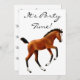 design original de um potro de baía de um porco atrevido pela designer Carolyn McFann do Two Purring Cats Studio num convite totalmente personalizável para amantes de cavalos.
