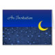 Um convite dobrado por costume com uma elegante arte vintage de uma noite estrelada com uma lua crescente brilhando contra um céu azul escuro. Clique em Personalizar para alterar fontes, dimensionar, adicionar ou remover texto e muito mais.