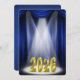 Convite da cerimônia de formatura para a turma de 2025 em azul e dourado no palco com holofotes.