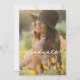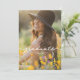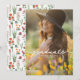 Moderno convite de formatura boêmio com flores silvestres brilhantes. Compreende tons de rosa, pêssego e verde, flores botânicas inspiradas em flores silvestres e jardins rústicos aquarelados com verde sutil e tipografia moderna boho em fundo branco. Com a sua foto mais bonita na frente.