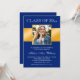 Um convite clássico de formatura com azul marinho e dourado. Sofisticado e elegante. Perfeito para formaturas de ensino médio, universitárias ou festas de formatura. Os desenhos são ilustrações impressas - NÃO SÃO DE FOIL DOURADO. A FOTO ILUSTRATIVA NÃO É INCLUÍDA. SUBSTITUA POR SUA FOTO ANTES DE COMPRAR.