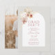 Eleve a celebração da sua formatura com nossos convites de festa de formatura modernos, apresentando uma deslumbrante moldura botânica arqueada na frente, perfeita para exibir sua foto favorita e adicionar um toque pessoal à ocasião. Adornados com flores boho nas cores cativantes de pêssego, rosa poeirento e terracota, esses convites exalam uma elegância encantadora com seus belos desenhos botânicos em aquarela e tipografia. No verso, você encontrará espaço para uma foto querida. Prepare-se para compartilhar sua alegria e conquista de uma maneira que seja elegante e memorável!