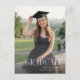 Celebre seu graduado com este cartão-postal de convite de formatura moderno e elegante, apresentando um laço preto ousado e uma tipografia de caligrafia refinada. O layout minimalista e sofisticado combina perfeitamente com a foto do seu graduado, criando um souvenir elegante e pessoal para qualquer evento de formatura de faculdade ou universidade. Perfeito para uma festa de formatura inspirada em fita coquette trendy, ele combina um design atemporal com detalhes significativos. Personalize facilmente seu cartão-postal de convite de formatura com sua própria foto e texto. Personalize o seu hoje.