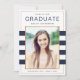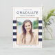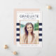 Esses convites de formatura sofisticados apresentam folha de falso ouro rosa e listras em azul marinho. A cor no verso do cartão pode ser personalizada para qualquer cor que você desejar.