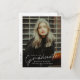 Este convite de formatura com foto moderno, elegante e sofisticado apresenta uma sobreposição de graduado em letra de forma e nome, escola e foto personalizáveis na frente. O verso oferece parabéns e detalhes do evento com uma foto adicional. Uma ótima maneira de mostrar seu graduado.