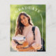 Este convite de formatura moderno e elegante apresenta um arco branco elegante e uma foto do formando como fundo. Pode ser personalizado para complementar as cores da escola ou tema de formatura. Vire o cartão e use as ferramentas de design para adicionar seu texto e alterar a cor do fundo para combinar com o esquema da sua foto.