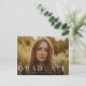 Este convite de formatura com foto elegante e moderno apresenta uma foto horizontal e título com texto personalizável na frente. O verso tem detalhes do convite e uma foto vertical. Clique no botão de edição para personalizar este design.