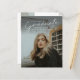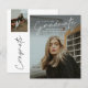 Este convite de formatura com foto e orçamento razoável é simples e moderno. Ele apresenta uma sobreposição de texto manuscrito de graduado e nome, escola e foto personalizáveis na frente. O verso oferece parabéns e detalhes do evento com mais 2 fotos adicionais. Uma ótima maneira de mostrar seu graduado.