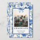Convite de Formatura com Laço Azul de Toile Coquette com um padrão clássico azul de toile de juoy no verso.