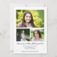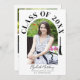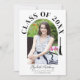 Um fundo branco simples com uma foto do seu formando na frente em um formato arqueado da moda, com o "Turma de" e ano, e um borla pendurada. Também há espaço para personalizar com nome e detalhes. No verso há espaços para 3 fotos e os detalhes do convite, ou a redação do anúncio.