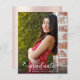 Sinta-se orgulhoso, alegre e mostre este marco do seu graduado favorito! Envie este convite de anúncio de orçamento de foto personalizada, feminino, deslumbrante, simples e moderno para um evento inesquecível. Um visual divertido e alegre de escrita manual em branco e corações fofos e alegres, junto com o nome dela, ano de turma e escola, sobrepõem a foto de sua escolha. Personalize o texto personalizado com o nome do seu graduado, escola e ano de turma na frente. No verso, adicione sua nota pessoal, próxima escola que ela está frequentando, informações da festa, etc., em tipografia cinza suave, no fundo de falso foil rosa bege. Garantido para adicionar diversão estilosa à sua ocasião especial!