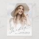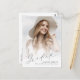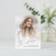 Anúncio e convite de formatura minimalista com script moderno chic e fotos na frente e atrás, simples e elegante. Personalize com suas próprias fotos e informações da festa de graduação.