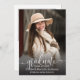 Cartão de convite de formatura de foto simples com letra elegante, com foto de retrato em bleed total na frente com nome e detalhes da formatura. O verso tem uma segunda foto com detalhes adicionais. Clique no botão de editar para personalizar este design.