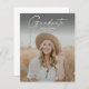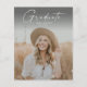 Convite de Formatura de Graduado em Roteiro Moderno de Orçamento. As cores podem ser alteradas. A parte traseira inclui detalhes adicionais e uma segunda foto. Clique no botão de edição para personalizar este design com suas fotos e texto.