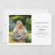 Este convite de festa de formatura apresenta uma foto horizontal com sobreposição de texto em caligrafia elegante. O verso oferece uma segunda foto e texto personalizado para os detalhes do seu convite e festa.