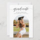 Um convite de formatura minimalista projetado com duas fotos personalizadas em forma de arco e uma tipografia de letra cursiva clássica e elegante de "graduado". Personalize os detalhes da festa no verso.