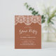 Vamos celebrar o formando! Convide os convidados para o seu evento com este convite de formatura personalizável. Ele apresenta uma escrita rústica e renda de brocado branco. Personalize-o adicionando seus detalhes. Este convite de formatura em terracota elegante também está disponível em outros tipos de papel e cores.