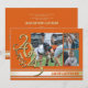 Anúncio de formatura de faixa de universitário tripla foto ouro da turma de 2025 em laranja e dourado.