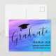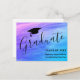 Este moderno Cartão Postal de Convite de Formatura é decorado com um fundo rosa, azul e roxo e tipografia estilosa.