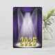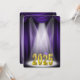 Convite da cerimônia de formatura para a turma de 2025 em roxo e dourado com holofotes.