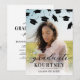 Celebre a conquista do seu graduado com nossos convites de festa de formatura modernos. Destacando uma foto personalizada do seu graduado ao lado de uma chuva de boinas pretas caindo, ele define o tom perfeito para uma celebração memorável. Além disso, com nosso modelo de texto fácil de usar, você pode personalizar o convite para se adequar ao seu estilo único. Faça o grande dia do seu graduado ser uma declaração de estilo e sofisticação.