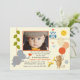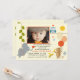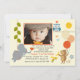 Um convite de aniversário fotográfico, encantador e juvenil. O cartão apresenta um elefante, macaco e coruja na frente e um urso escondido atrás. Perfeito para ambos os sexos. (FP)
