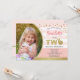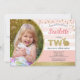 Convite de foto de festa tema coelhinho fofo rosa e dourado elegante para aniversário de 2 anos da bebê.