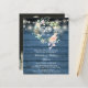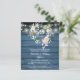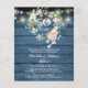Com uma delicada guirlanda de rosas florais em aquarela e luzes de corda bonitas em um fundo de painéis de madeira azul, este convite de aniversário de casamento de 50 anos rústico e sofisticado pode ser personalizado com as informações do seu aniversário especial. O verso apresenta sua foto especial. Criado por Thisisnotme©