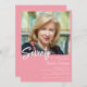 Foto moderna, minimalista, convite de aniversário cor-de-rosa e branco para uma festa de aniversário divertida. A idade pode ser alterada. Este convite é simples e elegante, convite de aniversário para homens e mulheres. A cor de fundo rosa e branca pode ser alterada para qualquer cor de sua escolha usando a ferramenta design.