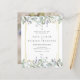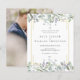 Um convite de casamento econômico e bonito com folhas de sage e lilás que caem sobre uma moldura dourada elegante que envolve os detalhes do seu casamento em texto clássico e elegante e sua foto especial no verso. Criado por Thisisnotme©