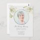 Este cartão-postal de convite de Celebração de Vida moderno e elegante mostra uma foto de seu ente querido enquadrada por uma moldura prateada de bom gosto e ilustrações vintage de belos lírios. A textura leve do papel adiciona ao sentimento caloroso. Personalize todos os títulos e mensagens ao seu gosto. Produtos correspondentes, como livros de visita, velas, etc., disponíveis em nossa coleção "Funeral de Lírios Botânicos Vintage".